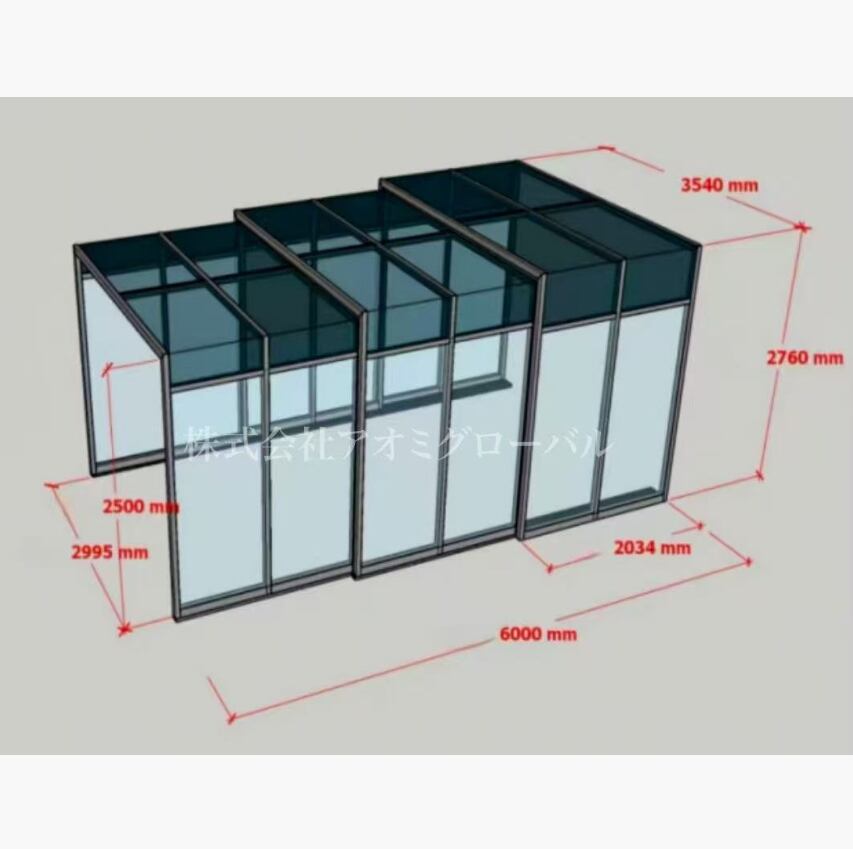折り畳み式カーポート W3.54×D6m×H2.76m(最小W3.54×D2.03m)
