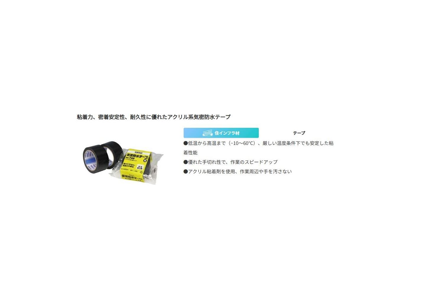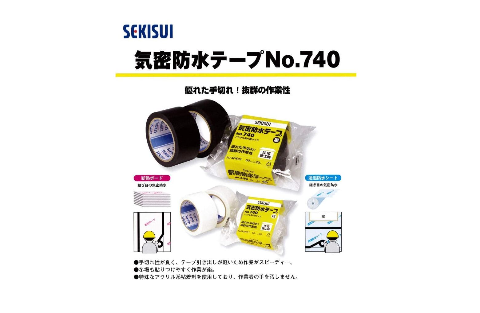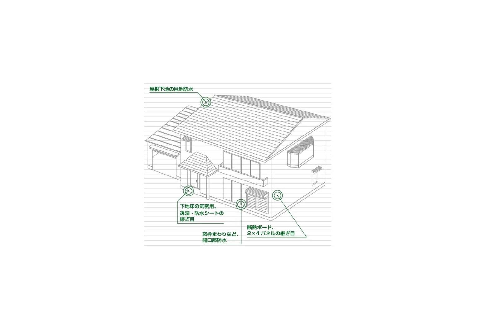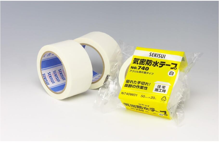 建築資材である透湿防水シートの固定や断熱材パネルの継ぎ目の固定に適しています。